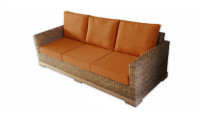Ce canapé en jacinthe d'eau naturelle tressée est caractérisé par ses lignes épurées et intemporelles pour une ambiance relaxante. Écologique, il bénéficie d'un revêtement en tissu certifié bio (GOTS), d'un piètement en hêtre issu de forêts gérées françaises et de mousses en latex naturel également certifié bio. Voici un canapé 3 places éco-conçu qui conjugue confort et esthétisme au naturel !