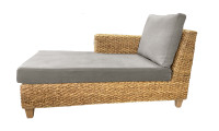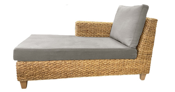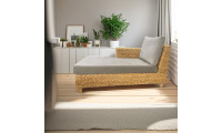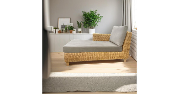 Cette méridienne, en jacinthe d'eau naturelle tressée est caractérisé par ses lignes épurées, intemporelles pour une ambiance relaxante. Ecologique, elle bénéficie d'un revêtement en tissu certifié bio (GOTS), d'un piètement en hêtre issu de forêts gérées françaises, de mousses en latex naturel également certifié bio. Voici un meuble éco-conçu qui conjugue confort et esthétisme au naturel !