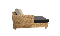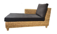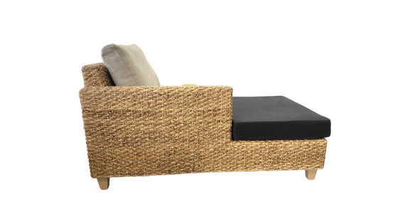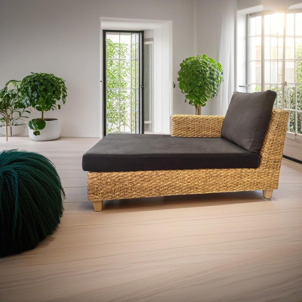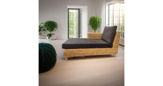 Cette méridienne, en jacinthe d'eau naturelle tressée est caractérisé par ses lignes épurées, intemporelles pour une ambiance relaxante. Ecologique, elle bénéficie d'un revêtement en tissu certifié bio (GOTS), d'un piètement en hêtre issu de forêts gérées françaises, de mousses en latex naturel également certifié bio. Voici un meuble éco-conçu qui conjugue confort et esthétisme au naturel !