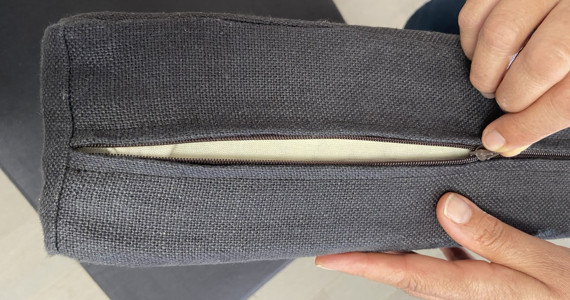 Housses amovibles (fermeture) en tissu issu de l'agriculture biologique lavable en machine. Nous déconseillons le sèche linge qui abîme rapidement les fibres des tissus.