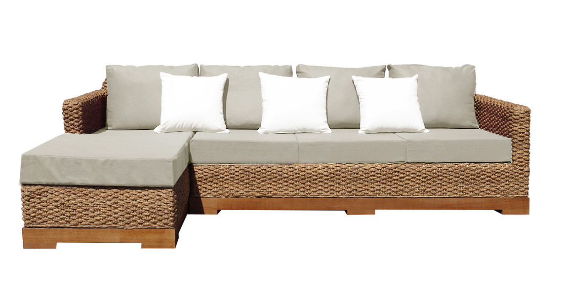 Ce canapé d'angle, en jacinthe d'eau naturelle tressée est caractérisé par ses lignes épurées, intemporelles pour une ambiance relaxante. Ecologique, il bénéficie d'un revêtement en tissu certifié bio (GOTS), d'un piètement en hêtre issu de forêts gérées françaises, de mousses en latex naturel également certifié bio. Voici un meuble éco-conçu qui conjugue confort et esthétisme au naturel !