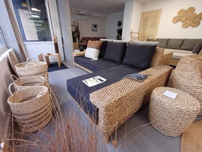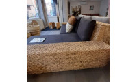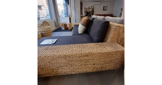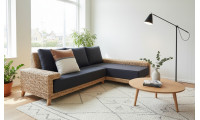 Ce canapé d'angle tressé est composé d'un bâtard 3 places et d'une méridienne. Sa particularité qui fait tout son charme : un accoudoir plat qui revient sur l'assise pour s'asseoir, poser un livre ou un plateau. Son style original s'intègrera parfaitement à un univers contemporain en lui apportant chaleur et convivialité grâce à la chaleur des matériaux.