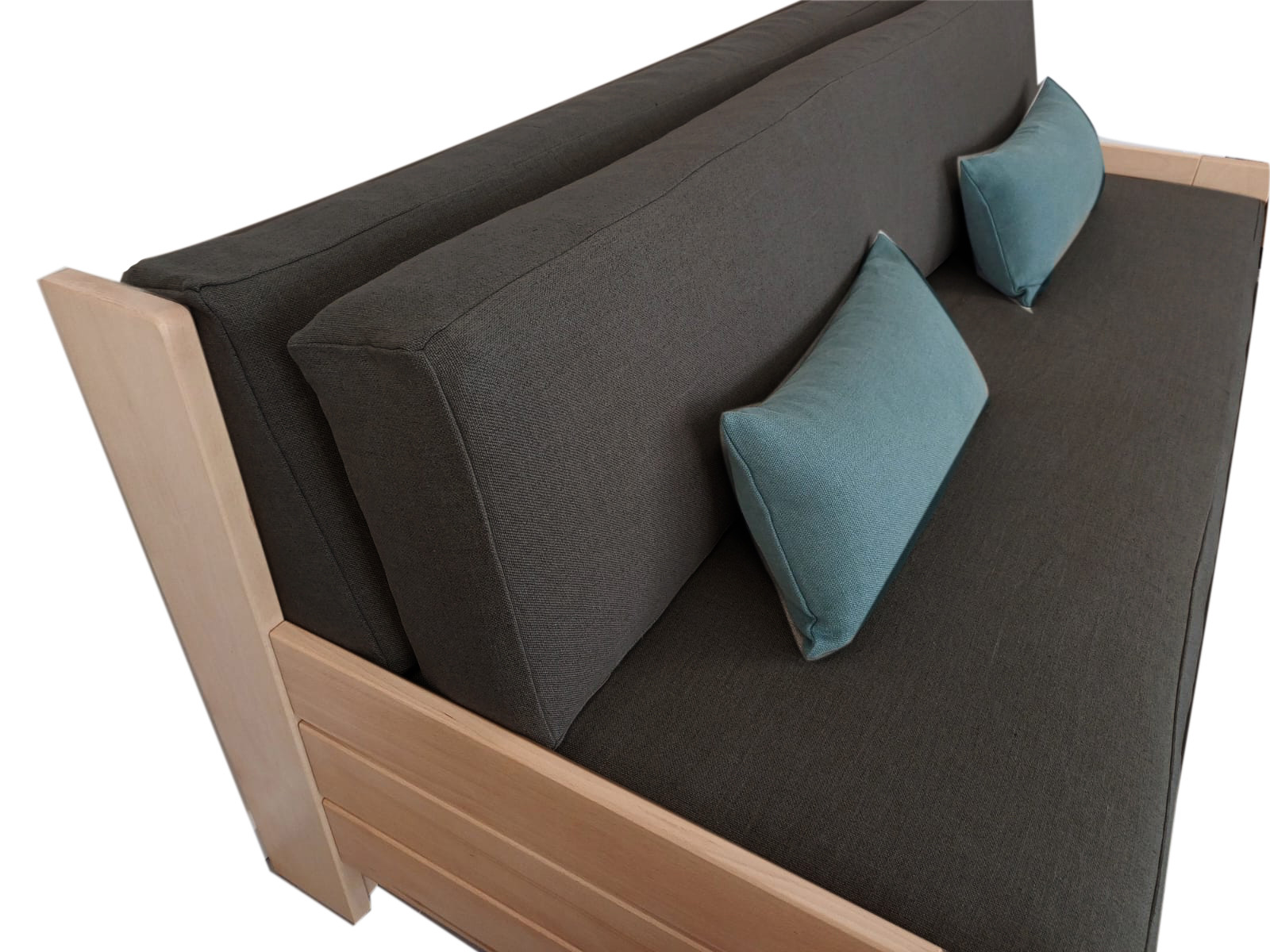 Ce canapé est un vrai lit équipé d'un matelas en latex BIO. Vous ne ferez ici aucun compromis sur le confort du couchage et pouvait même profiter de la version en 160x200. Idéal pour réaménager une chambre en bureau sans perdre la fonction couchage, ou en canapé principal dans votre salon, son look se personnalise en coloris de tissu et de bois.